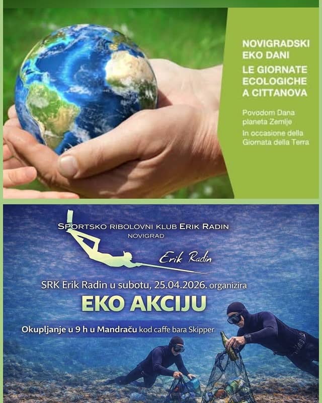 U subotu 25. travnja, održava se eko akcija čišćenja podmorja u organizaciji SRK „Erik Radin“ Novigrad 🤿Sportsko ribolovni klub Erik Radin