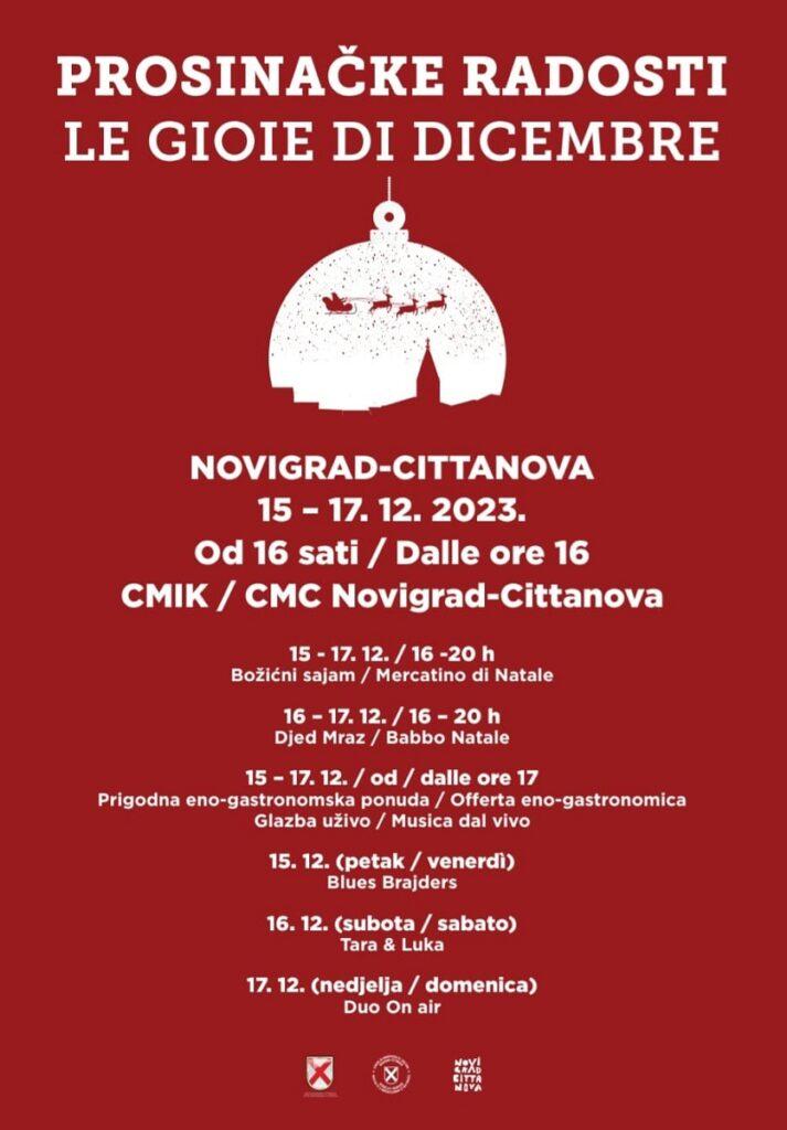 Novigrad će tijekom prosinca biti mjestom brojnih događanja za sve uzraste i afinitete, pri čemu je jedan od središnjih prosinačkih događaja trodnevni program u vikendu od 15. do 17. prosinca.